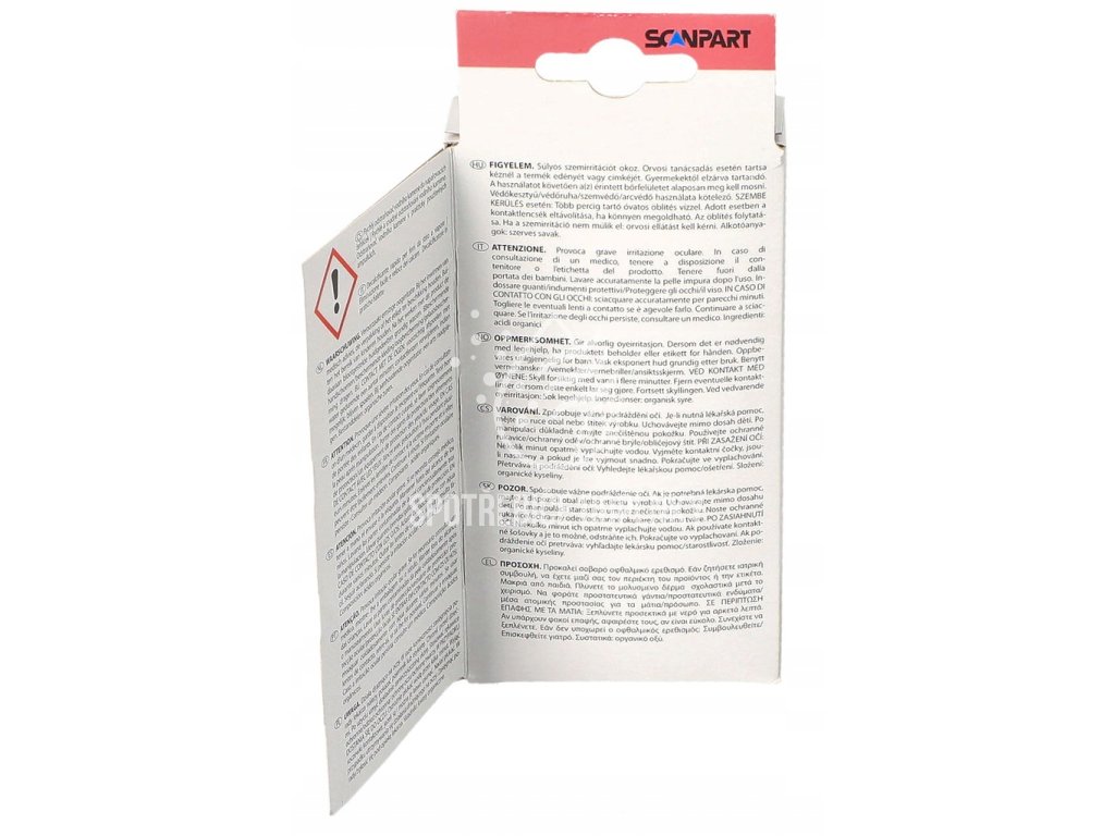 Rýchly odvápňovač Scanpart je špeciálny tekutý prípravok uzavretý v jednorazových ampulkách. Je navrhnutý pre pravidelné odstraňovanie vodného kameňa z parných žehličiek aj žehličiek s oddeleným parným generátorom, čím zabezpečuje silnú paru a rýchlejšie, pohodlnejšie žehlenie.